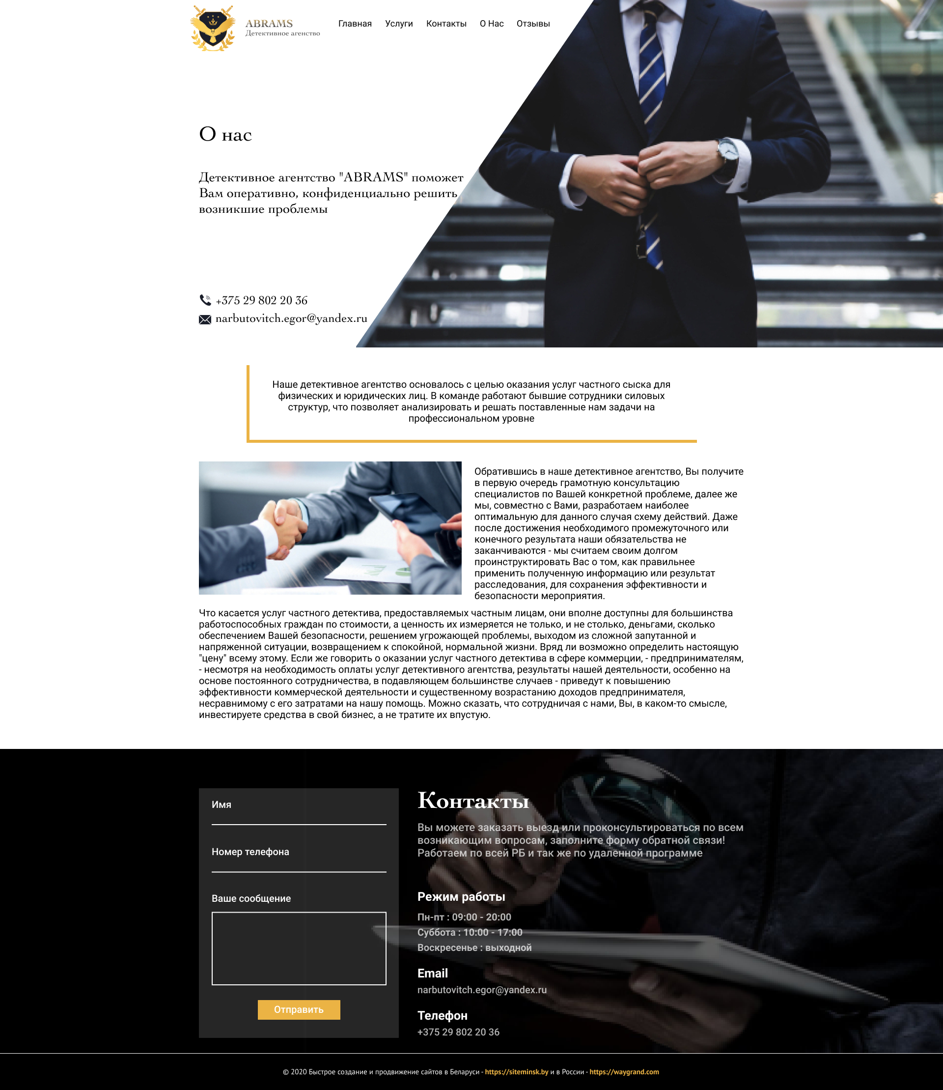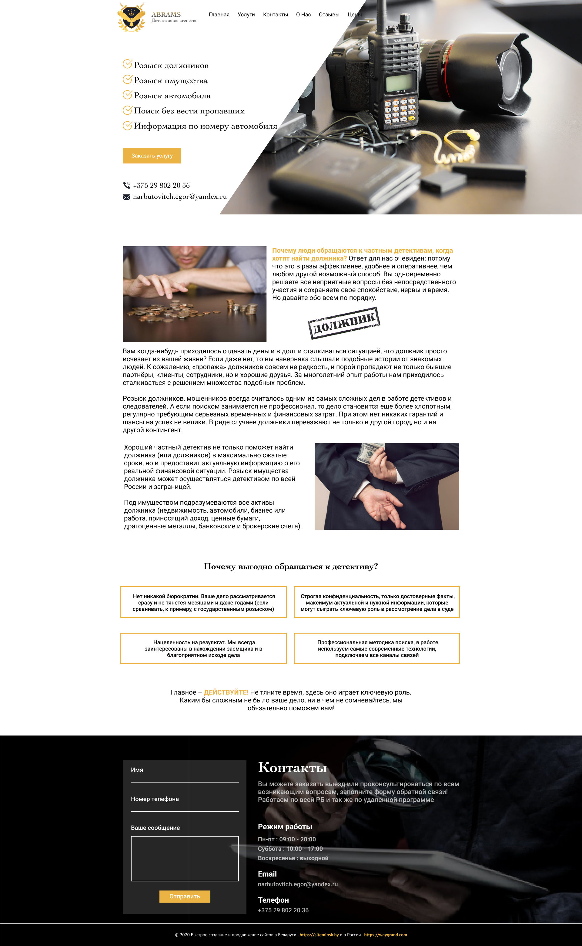 Закажите готовый продающий сайт визитка #239 в Дзержинске за 5-7 дня «под ключ»: свёрстан, отрисован и готов к рекламе. Тематика шаблона «Частное детективное агентство».